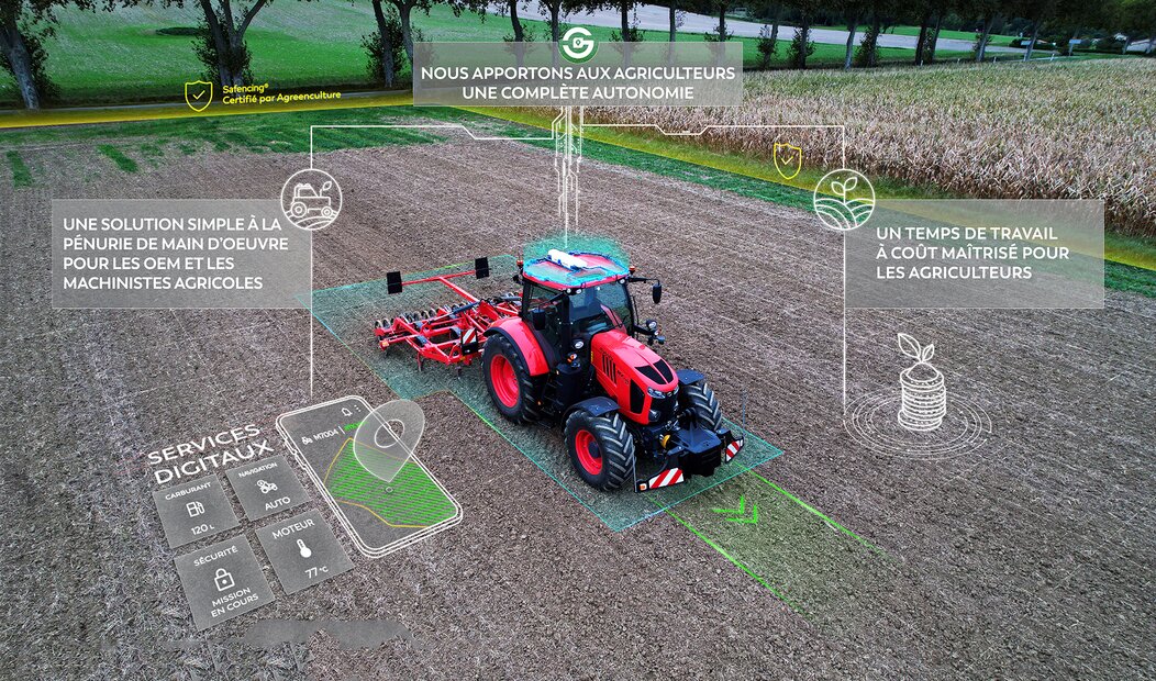 La sécurité constitue un pilier central de la solution, avec le « safencing », une barrière virtuelle sécurisée qui empêche toute sortie de périmètre. Conforme à la réglementation européenne pour la navigation autonome hors des routes, le système repose sur une technologie de positionnement sécurisé S-RTK. À ce jour, environ une centaine de machines agricoles, y compris des tracteurs, sont équipées des solutions développées par la start-up.