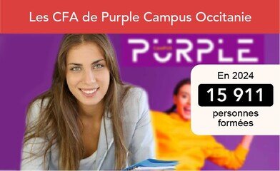 En 2024, 15 911 personnes ont été formées, dont 10 449 apprentis ont été formé dans les 19 campus que compte Purple Campus Occitanie. Le premier centre de formation des apprentis (CFA) régional est né en 2021 du regroupement des CFA des chambres de commerce et d’industrie d’Occitanie. Depuis de nouveaux CFA ont vu le jour dont celui de Castres qui doit ouvrir ses portes dans les prochaines semaines. Deux autres créations sont prévues en 2027 : un campus à Toulouse en partenariat avec la CCI de Haute-Garonne et un autre à Montpellier dédié à l’innovation, à la digitalisation et à l’éco-responsabilité. Purple Campus Occitanie s’appuie sur 11700 entreprises partenaires et couvre 13 domaines de formation : automobile-mécanique, commerce-vente, développement des compétences, gestion-comptabilité, industrie, langues, management des ressources humaines, qualité-hygiène-sécurité-environnement, restauration-hôtellerie, santé-nient-être, sport-tourisme-animation, stratégie d’entreprises, web-informatique. Le taux de réussite aux examens atteint 84 %, et le taux d’insertion professionnelle s’élève à 91 % dans les six mois.