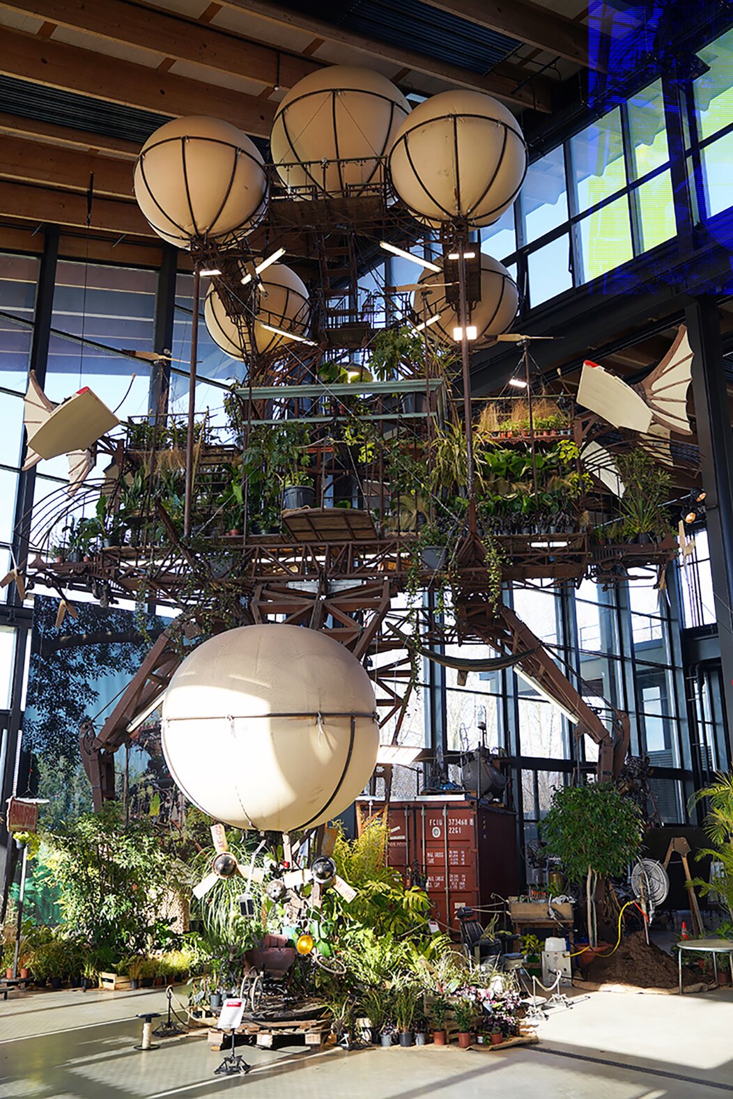 Après un véritable tour du monde, de Buenos Aires, à Montréal, en passant par Bruxelles, Turin, Calais, Nantes ou encore Paris, l’étrange aéronef fait escale à Toulouse tout au long de l’année 2026. Le mastodonte impressionne : 15 mètres de haut, 10 mètres d’envergure, 8 tonnes de métal. Quatre pattes d’acier, une serre centrale, un aérostat composé de cinq ballons… L’Aéroflorale II avance et vole grâce à l’énergie des spécimens embarqués et au gaz spécial contenu dans ses ballons. Une véritable clef de voûte mécanique et végétale.
