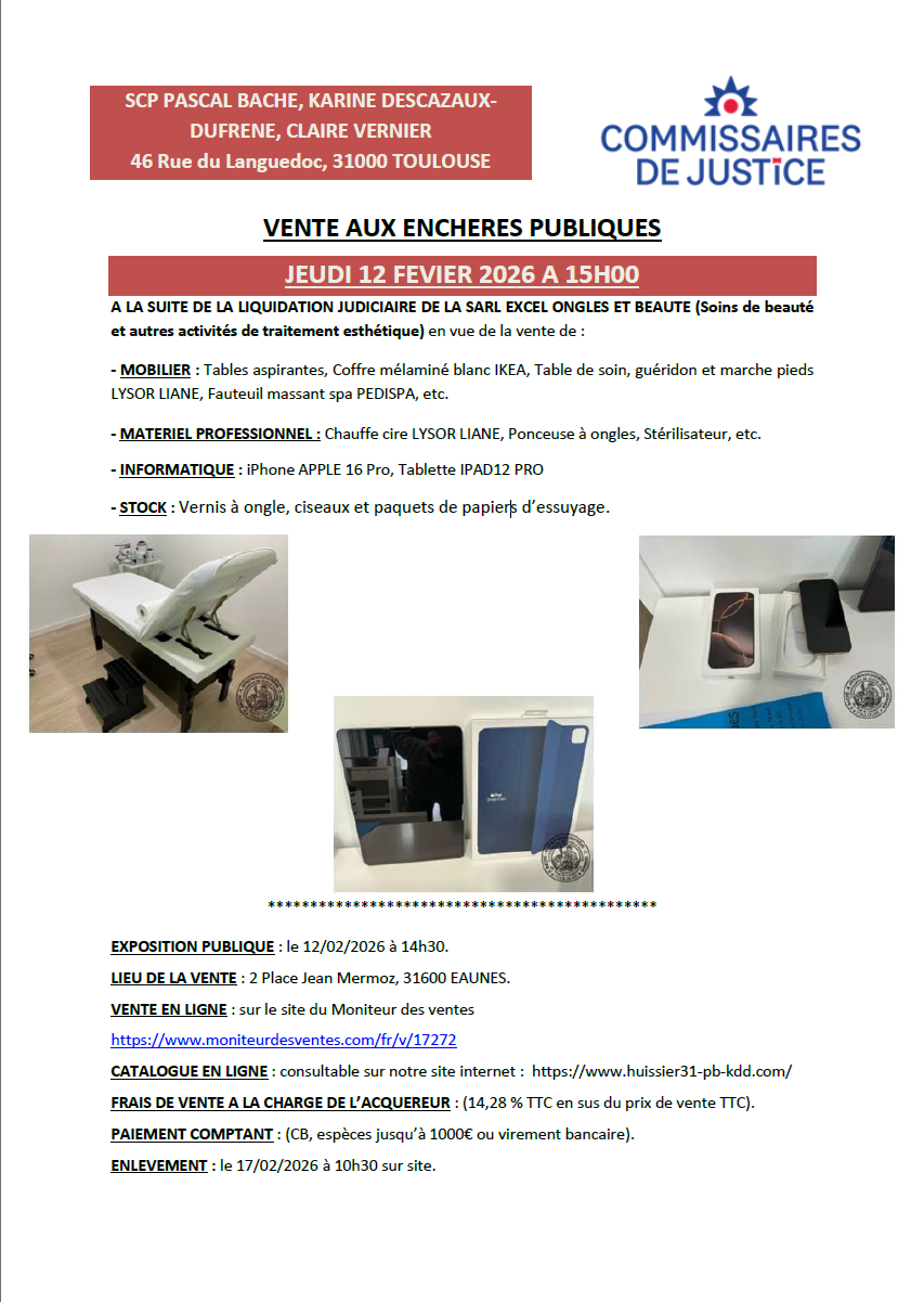 CATALOGUE EN LIGNE : consultable sur notre site internet : https://www.huissier31-pb-kdd.com/