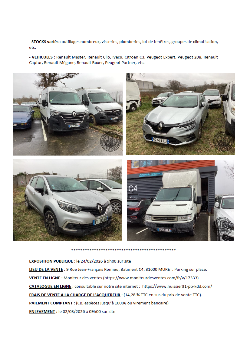 CATALOGUE EN LIGNE : consultable sur notre site internet : https://www.huissier31-pb-kdd.com/